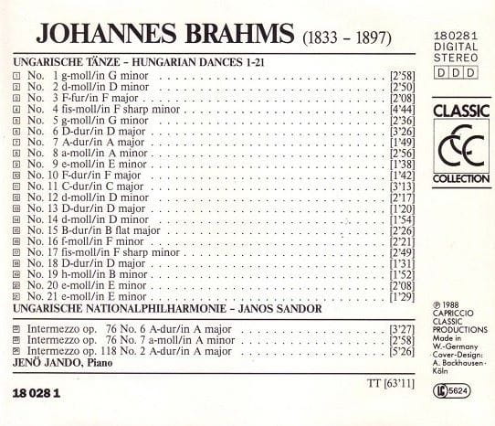 Brahms - Ungarische Nationalphilharmonie, Janos Sandor – Ungarische Tänze 1-21 (Hungarian Dances) (CD)