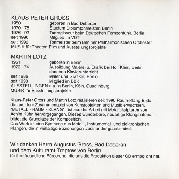 Klaus-Peter Gross Und Martin Lotz – Metall - Raum - Klang (CD)