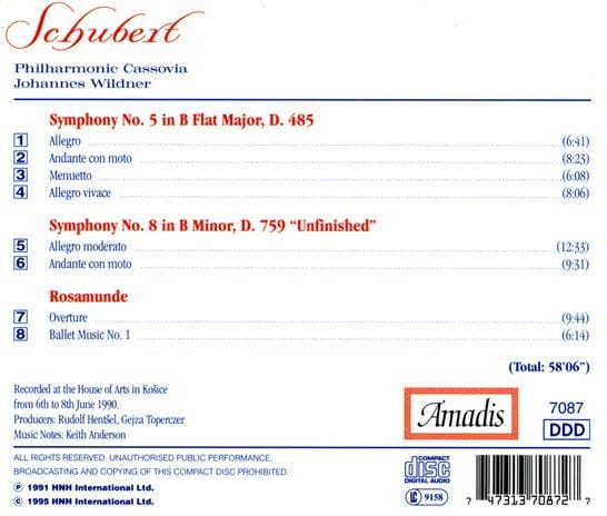 Schubert - Johannes Wildner, Philharmonia Cassovia – Symphonies Nos. 5 & 8 (CD)