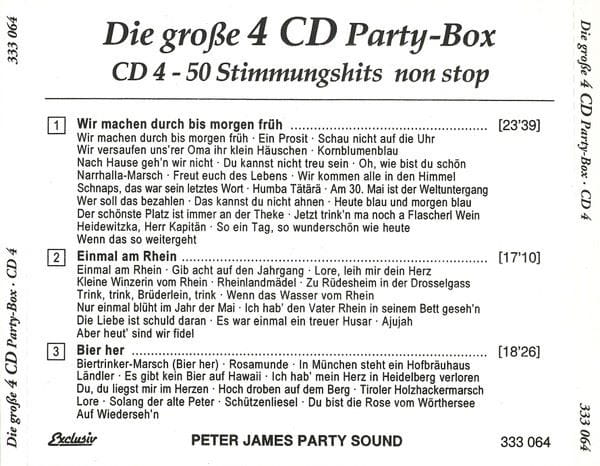 CD 1: Maxi Dance Sensation CD 2: Keep On Dancing CD 3: Party Power Mix CD 4: 50 Stimmungshits Non Stop